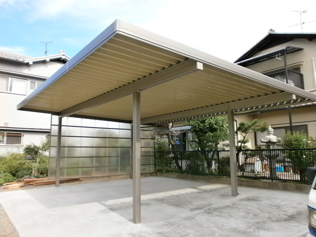 元は車1台分のカーポート屋根でした。 ご主人様が大の車好きで、同じく車を大切にしているリフォーム担当と話が合い 「どうせやるなら、とことんやりましょう!」 という事になりました。 道路からの動線を考慮して、入庫向きを変更。 荒地だった所はコンクリートで固め、 車3台分の素晴らしいピット風ガレージになりました。