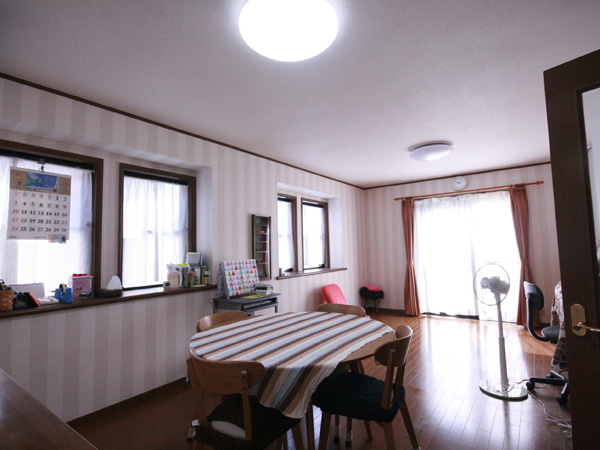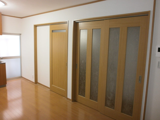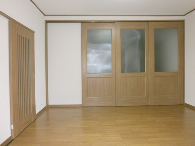 間取りを変更して、広い部屋にしたいとのご要望でした。 廊下を室内に取り込み、間仕切りを撤去しました。 左の写真の奥は、開閉間仕切りになっており、普段は二間になっていますが、 大勢の集まりの際には、間仕切りを開けて、大きな部屋になるようにしています。 右側の写真は、反対から見た所です。 収納スペースも工夫して配置し、使いやすい空間になり、とても喜んで頂きました。 -