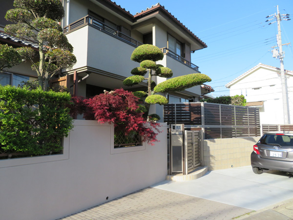 塀と生垣を撤去して、広々とした駐車スペースを確保。 開放感のある明るいエントランスに仕上がりました。 -