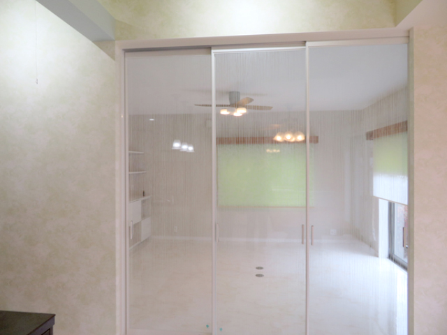リビングと洋間の壁をなくして可動式の間仕切りを取り付け、開放的なLDKを実現しました。