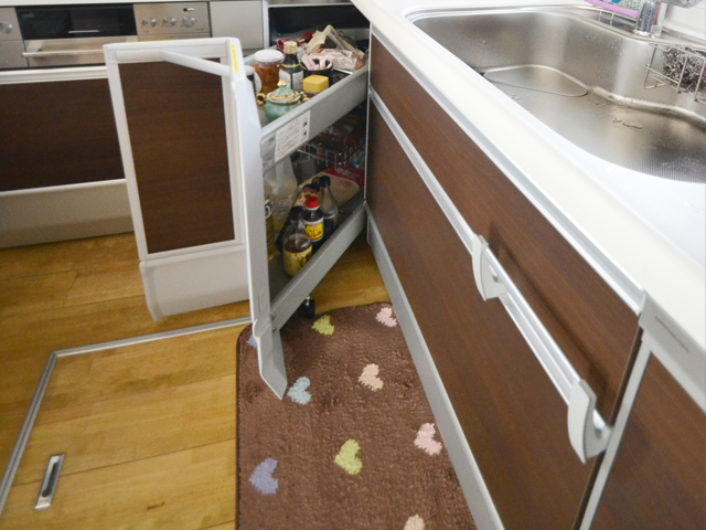 スライドタイプの収納は、探し物がすぐに見つかり奥の物も、かがむことなくサッと取り出せます。 -
