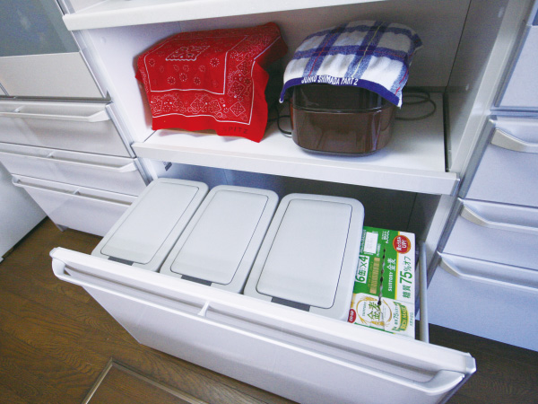 スライドタイプの収納は、探し物がすぐに見つかり奥の物も、かがむことなくサッと取り出せます。 -