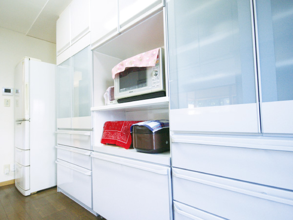 本体の収納が大容量だから、大きなお鍋なども綺麗に収納でき、キッチン周りがスッキリしました。 -
