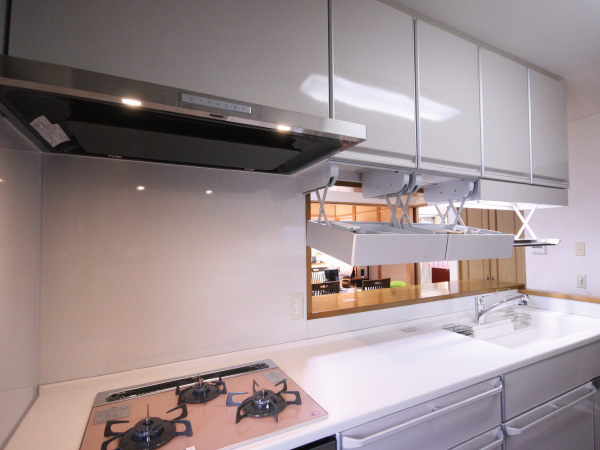 コンロの五徳がすぐに外せて、サッと拭いて お掃除できるようになりました。レンジフードはスイッチを 入れておくと、自動的に運転するので便利ですね。 -